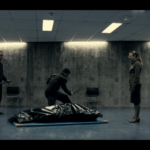 A l’écran, le compteur des naissances défile. Les zéros sont signifiés par des carrés blancs : une existence, annoncée à la population par des hauts parleurs qui refusent le silence et favorisent une politique nataliste. Une vie, de la naissance à la mort, du berceau à la barquette de viande hachée avec entre les deux un jeu qui impose sa règle : la loi du plus fort, bouffer ou se faire bouffer. La mère de Philippe le sait, elle raconte à son fils la fable de la maman ourse qui abandonne son fils pour qu’il s’endurcisse à l’épreuve des éléments et se suicide en se jetant du balcon de sa barre HLM. Le jeune orphelin grandit dans une institution en apprenant à « jouer », donner des coups plutôt que d’en recevoir, ne pas finir dans un body bag. Il rencontre Marie, qui le sauve de la pendaison, le couple se marie. Lui devient le cadre implacable et froid d’une société pour laquelle il fait passer des tests absurdes, soumet aux postulants des jeux psychologiques inouïs de violence, humiliants, qui nient toute notion d’humanité à la personne. Elle déteste ce que Philippe est devenu mais au sein de ce couple devenu silencieux, ce même silence refusé par la société, l’amour est toujours là, il se lit dans les regards, ne veut pas renoncer. Carré Blanc est l’histoire de cette amour, plus fort que cette société qui nie le bonheur.(LIRE LA SUITE)